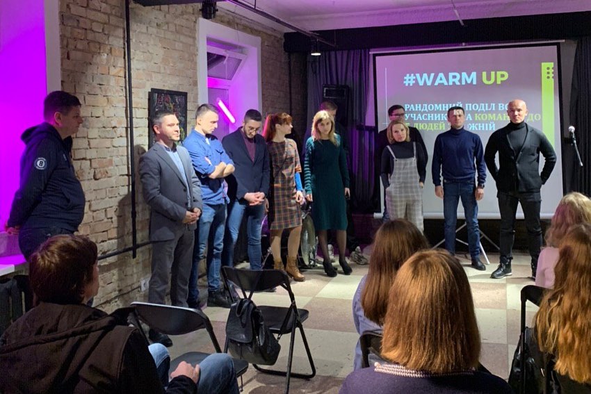Далі: всі присутні діляться на рандомні команди аби прововести warm-up для розігріву аудиторії та розбиття бар'єру при першій розмові.